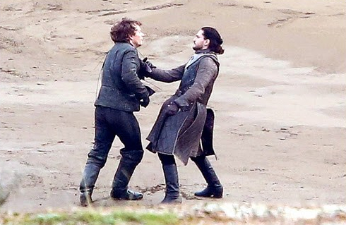 SPOILER ALERT. Simplesmente vemos Jon novamente com a roupa dos Night Watch. Como sua cena foi gravada no mesmo dia em que gravaram com Lena Headey, houve a dúvida do encontro de Jon com Cersei.