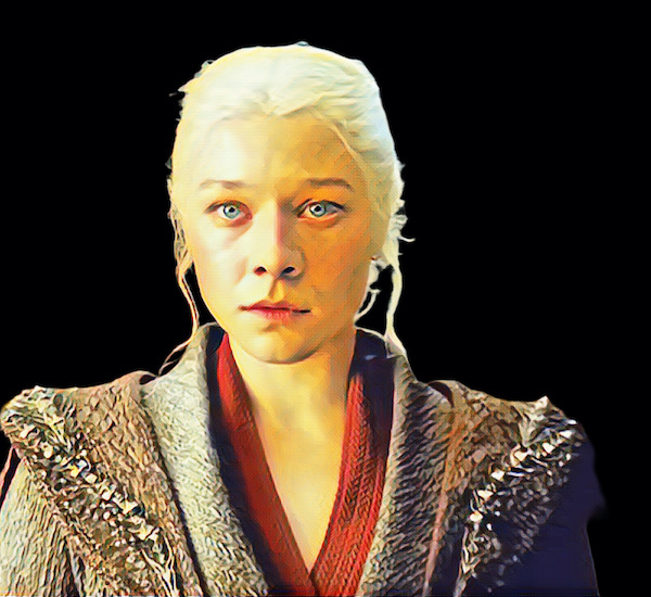 O segundo casamento de Viserys é com a jovem de 18 anos, Alicent Hightower, interpretada por Olivia Cooke. Alicent é filha do Mão do Rei, Otto Hightower, interpretado por Rhys Ifans. É uma união feliz que gera três filhos, incluindo Aegon. Apesar de inicialmente ter gostado e sido amiga da enteada, Alicent se irrita com ela por ocupar a posição de “primeira dama” e agora acredita no direito de seus filhos sucederem o Rei. As duas mulheres rompem e assim está plantada a semente da guerra civil batizada de Dança dos Dragões.