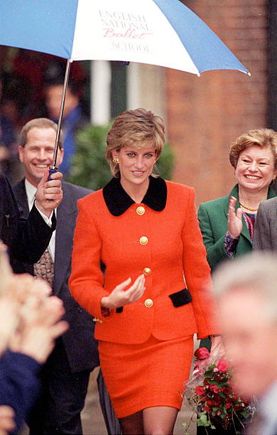 Bastou um registro de bastidores de Elizabeth Debicki usando o tailleur vermelho para localizarmos a ocasião em que a princesa Diana foi vista com um dos looks mais adorados de todos os tempos.