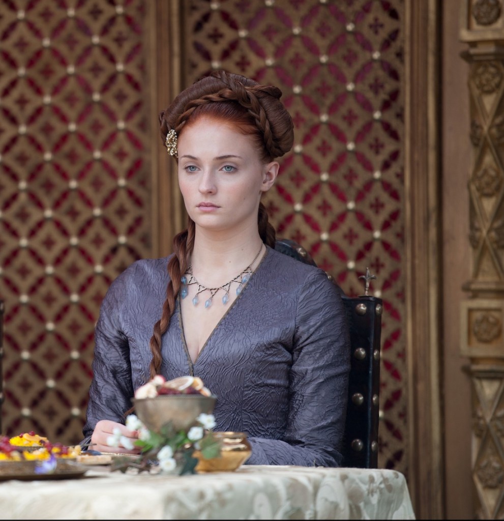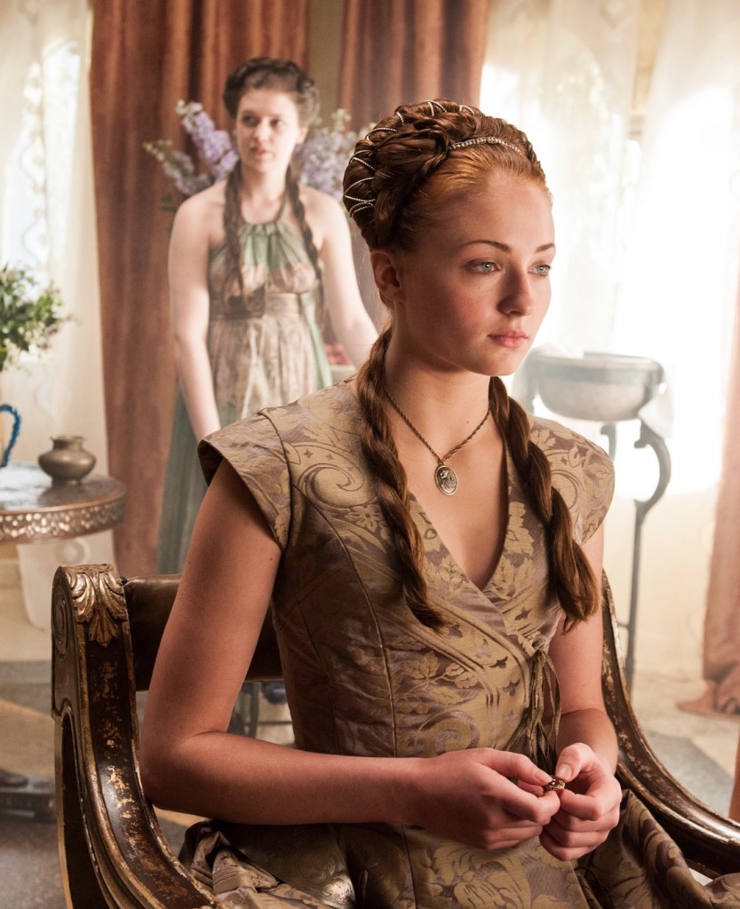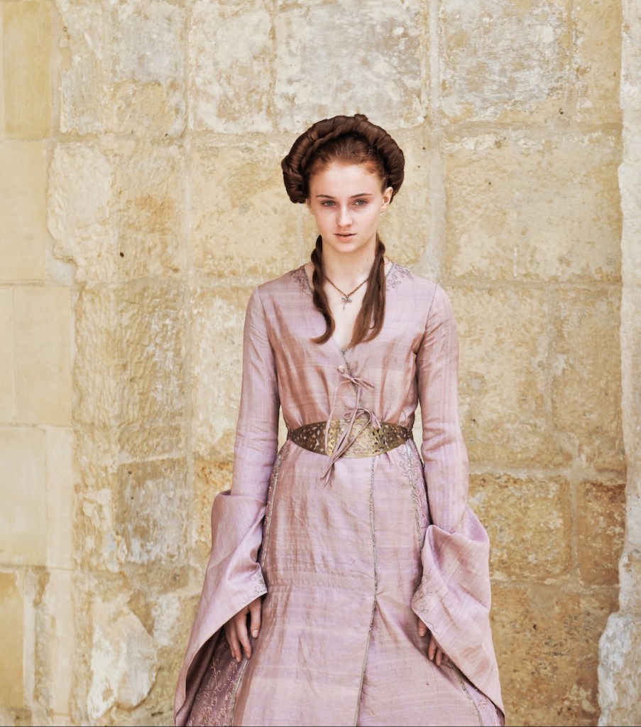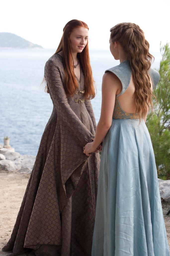 Desde que vemos Sansa pela 1ª vez, ela é apresentada como uma talentosa e prendada bordadeira, algo que sua irmã, Arya, não demonstra nenhuma aptidão ou interesse.