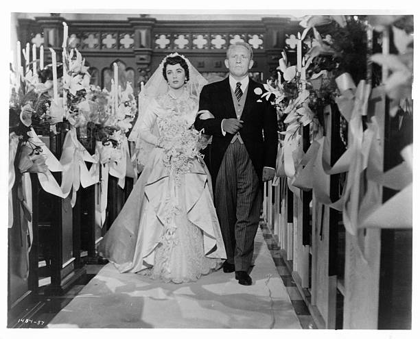 Nos anos 1950s, Elizabeth Taylor já era uma grande estrela. Tinha apenas 19 anos quando anunciou que iria se casar (pela primeira vez), e – em tempos pré-reality – a MGM transformou o evento pessoal em algo mundial. Com isso veio o filme, O Pai da Noiva, dirigido por Vincente Minnelli, estrelado por Spencer Tracy sobre um homem tentando lidar com os preparativos para o casamento de sua filha. No elenco, a popular Joan Bennett, a jovem Elizabeth Taylor e outros nomes famosos na época. O roteiro foi inspirado em um livro de Edward Streeter e chegou a ser indicado ao Oscar de Melhor Ator (Tracy), Melhor Filme e Melhor Roteiro. O vestido de noiva de Elizabeth, foi assinado por Helen Rose, a mesma que anos depois fez o modelo de Grace Kelly.