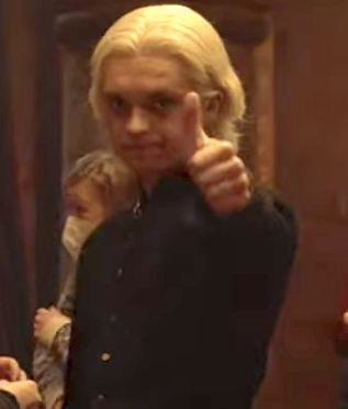 Aegon, Aemond, Daeron e Haelaena são filhos de Alicent (Olivia Cooke) com Viserys I (Paddy Considine), e Aegon tem um perfil mais agressivo e menos simpático do que de seu pai. Batizado em homenagem ao conquistador de Westeros, porta sua espada, Blackfyre (que é vista no teaser) e seu dragão é o Sunfyre. Porque o animal era dourado, adota essa imagem como seu símbolo, assim como seus seguidores.
