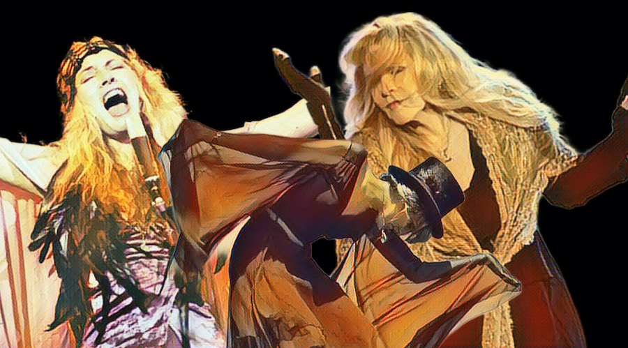 Inspired by Janis Joplin and Jimmy Hendrix, it started with the bohemian style that became popular and represented by light and floating fabrics. The vocalist wanted this because, as a former dancer, she wanted to accentuate her movements. Hats – top hats – also completed the look, alongside many necklaces. Short in stature, Stevie likes platform boots (in velvet) and lots of shawls. By the way, if we can associate a single element with Stevie’s style, it’s the shawls. It’s never without one, on stage or off. It pays double homage to her Native American heritage and her grandmother, who was a weaver. Gradually, lace and wavy elements were introduced. And the poncho – another common style in her clothes – came from a gift from an ex-boyfriend, which she started to adopt in 1979.