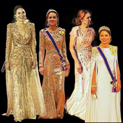 Today, after six months away from public events, it was wearing a beautiful white Jenny Packham that Katherine reappeared, alongside Prince William and her children to pay homage to her father-in-law, King Charles III.