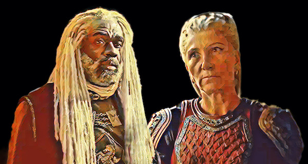 Assim, desde o início, pode-se dizer que Ser Corlys foi o pilar da causa negra. Seu apoio a Rhaenyra, mesmo após a “morte” de seu filho, era porque ele via nos filhos dela a continuidade da linhagem Velaryon, mesmo que a corte murmurasse sobre a bastardia dos meninos. Mais óbvia na série do que no livro.