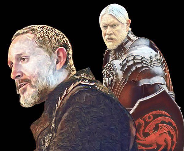 Raymun breaks with his cousin and declares that he will fight for Duncan, but he must be knighted first. Ser Lyonel Baratheon performs the ceremony. “Arise, Ser Raymun.”